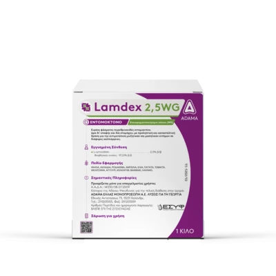 Το LAMDEX 2,5 WG είναι ευρέως φάσµατος πυρεθρινοειδές εντοµοκτόνο και δρα δι’ επαφής και διά στοµάχου µε προληπτική και κατασταλτική δράση, για την αντιµετώπιση µυζητικών καθώς και µασητικών εντόµων σε διάφορες καλλιέργειες στο νευρικό σύστηµα των εντόµων, παρεµποδίζοντας το κλείσιµο των διαύλων Na+ στους νευράξονες των νευρικών κυττάρων. Αυτό έχει ως αποτέλεσμα µια συνεχή νευροµυϊκή µεταφορά µηνυµάτων, πράγµα που οδηγεί σε υπερδιέγερση, παράλυση και θάνατο των εντόµων.